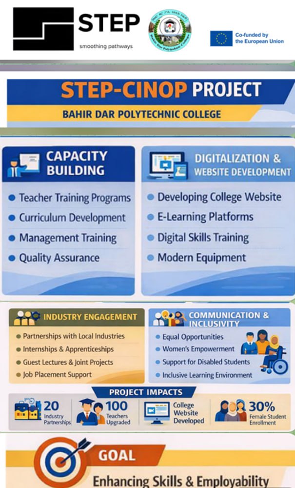 Bahir Dar Polytechnic College is implementing the STEP-CINOP Project, co-funded by the European Union, to improve skills and employability.